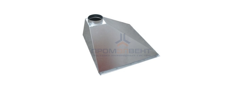 Вытяжные вентиляционные зонты применяются для местного удаления воздуха, газовых смесей, водяных паров, тепла или удаления пыли. Изготавливаются из оцинкованной стали 0,55 0,7 1мм или нержавеющей стали в случае прохождения агрессивных сред через сеть воздуховодов. Расчёт стоимости зонтов производится индивидуально, учитывая все параметры: длину, ширину, высоту, шинорейку, фланец и соответственно толщину стали.